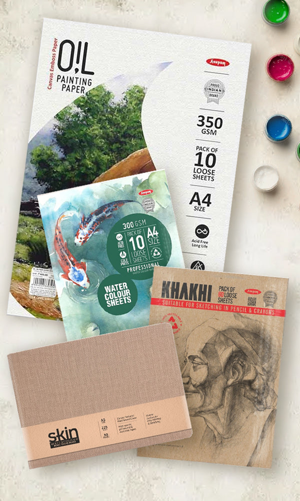You will come across various sheets and pads based on your colour medium, like watercolour, oil, acrylic, etc. We supply the following items: