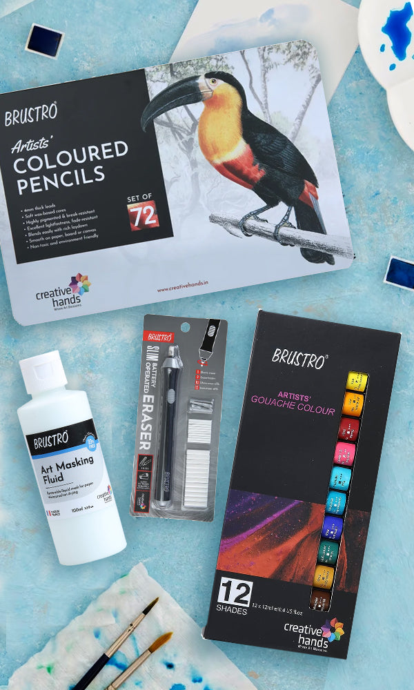 Art & drawing are not restricted to colours, brushes & sheets. The items used in the entire process are way more than what you think. We supply all such things as mentioned below & have kept them ready for your ease of purchase: