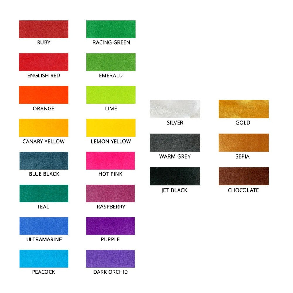 Calligraphy ink comes in a wide range of colors, including traditional black, sepia, and various vibrant shades. This provides calligraphers with ample options to add character and expressiveness to their lettering pieces.