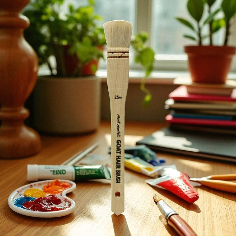Watercolour brushes are designed for working with watercolour paints. These brushes are typically made with soft and absorbent natural hair, such as squirrel or sable hair, allowing them to hold and release water and paint effectively. Watercolour brushes come in various shapes, including round, flat, mop, and more, offering versatility in creating washes, details, and delicate lines.