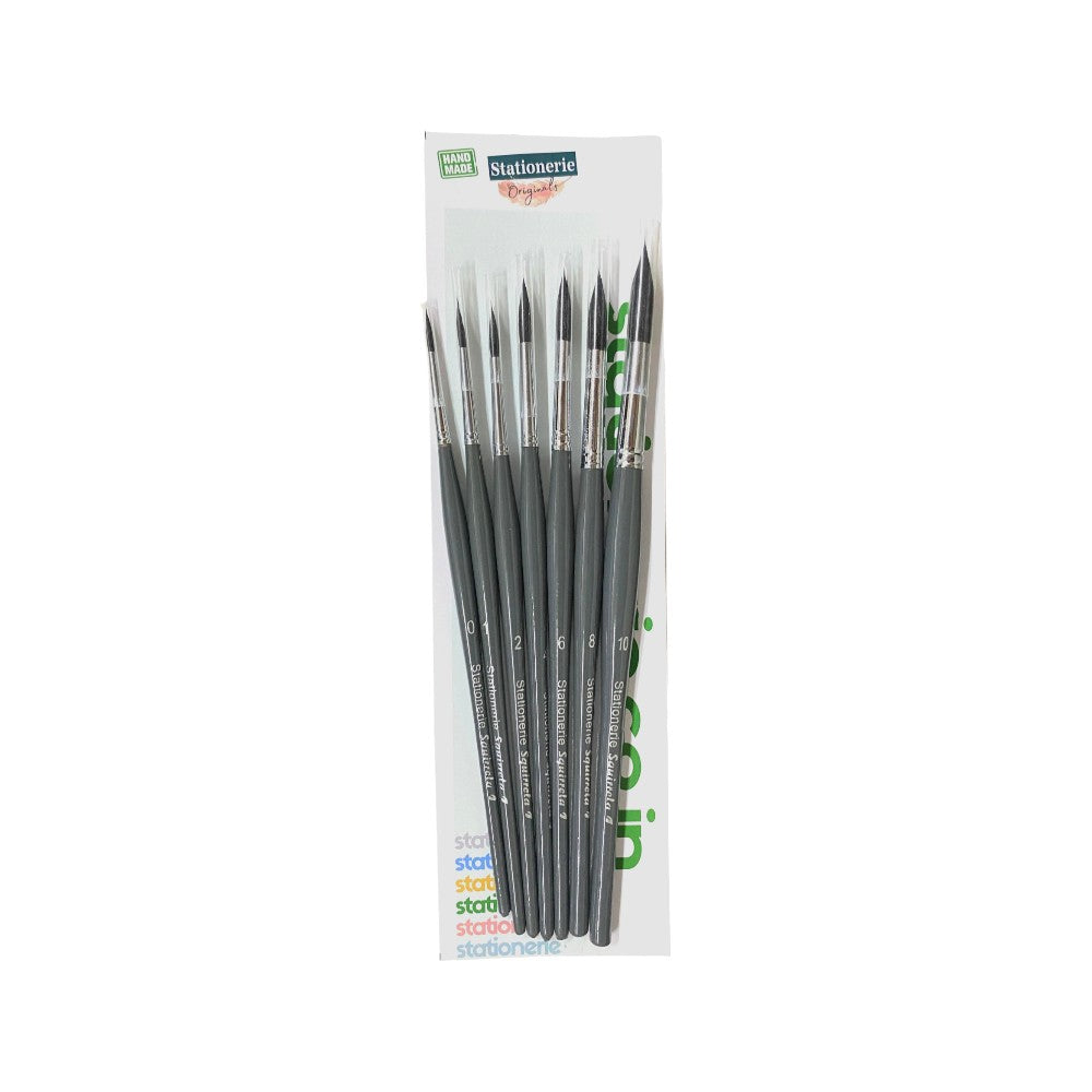 Watercolour brushes are designed for working with watercolour paints. These brushes are typically made with soft and absorbent natural hair, such as squirrel or sable hair, allowing them to hold and release water and paint effectively. Watercolour brushes come in various shapes, including round, flat, mop, and more, offering versatility in creating washes, details, and delicate lines.