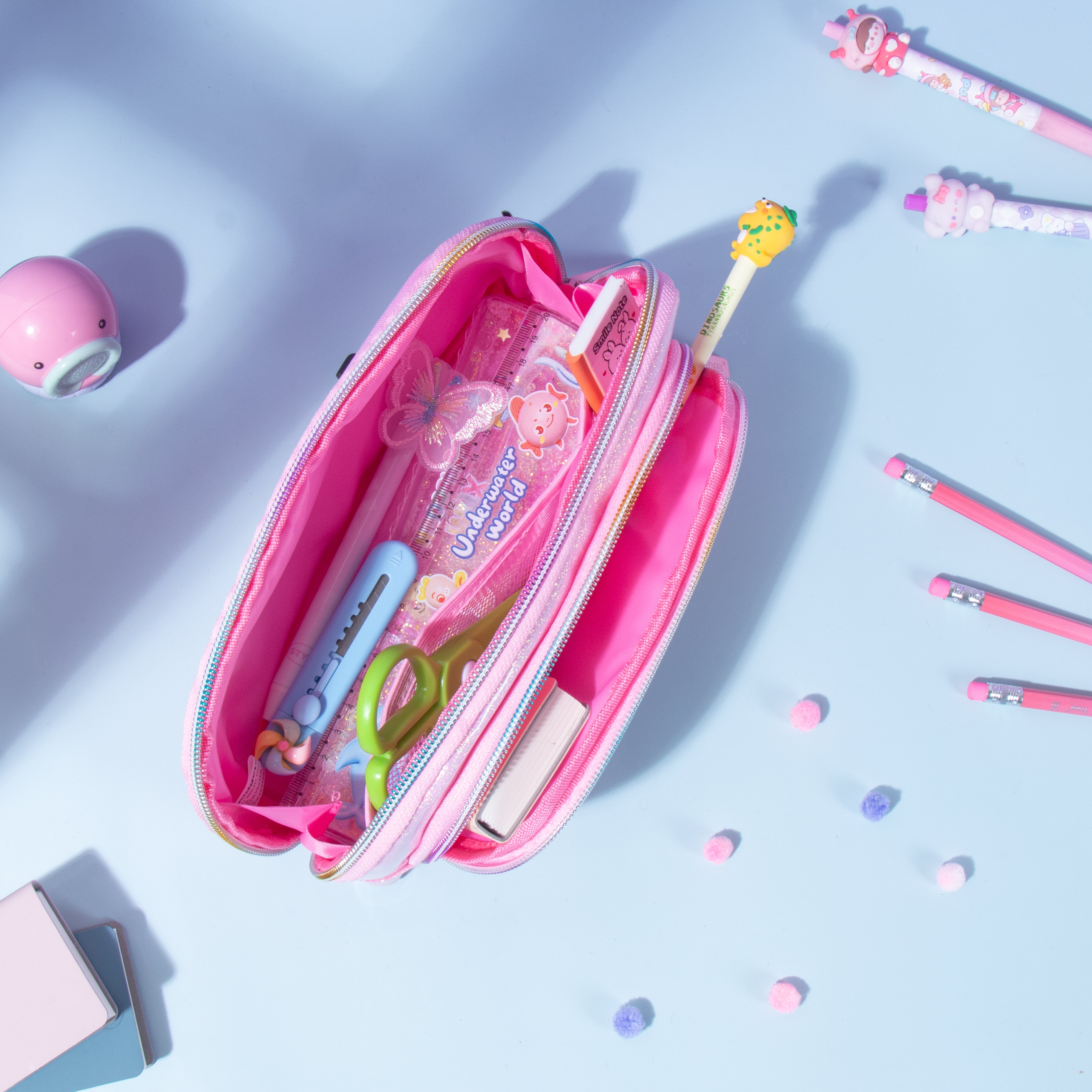 Capacity: Spacious dual-compartment design with separate zippers to easily organize pens, pencils, erasers, and other stationery essentials.