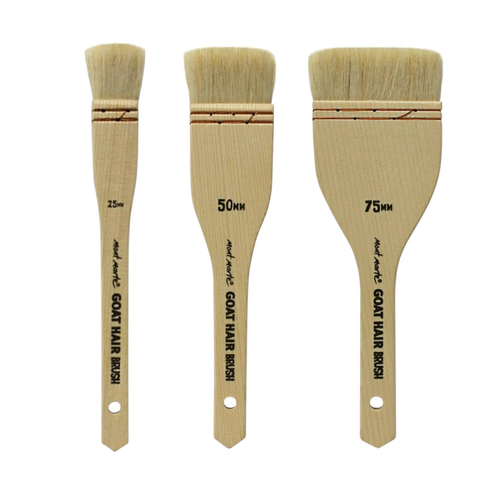 Watercolour brushes are designed for working with watercolour paints. These brushes are typically made with soft and absorbent natural hair, such as squirrel or sable hair, allowing them to hold and release water and paint effectively. Watercolour brushes come in various shapes, including round, flat, mop, and more, offering versatility in creating washes, details, and delicate lines.